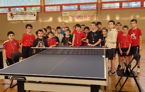 De bons résultats pour nos mini pongistes avec 4e ex aequo Stacie, 10e ex aequo Baptiste, 13 ex aequo Tom et Gabriel, 16e ex aequo Enzo et Soïg, 23e ex aequo Clotaire.