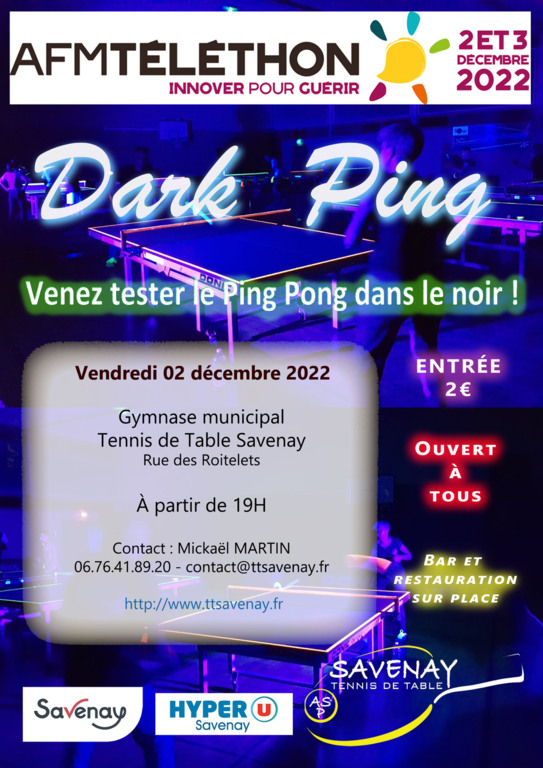 Le club organise son traditionnel Dark Ping le vendredi 02 décembre 2022 au gymnase du club.
