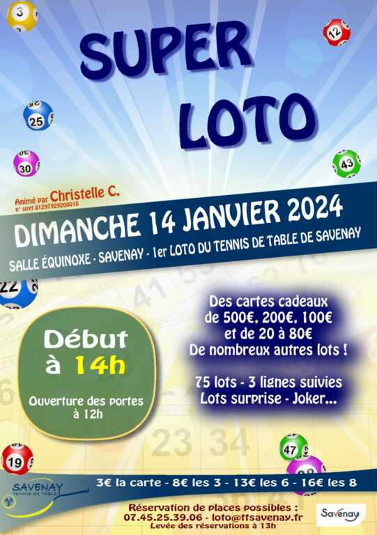 1er loto du club le dimanche 14 janvier 2024 à la salle Équinoxe de Savenay