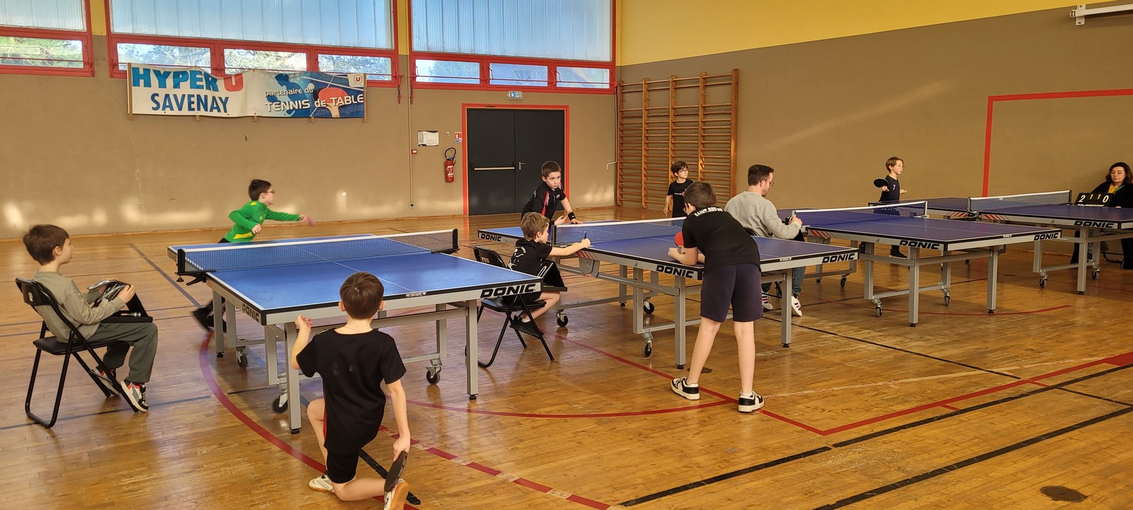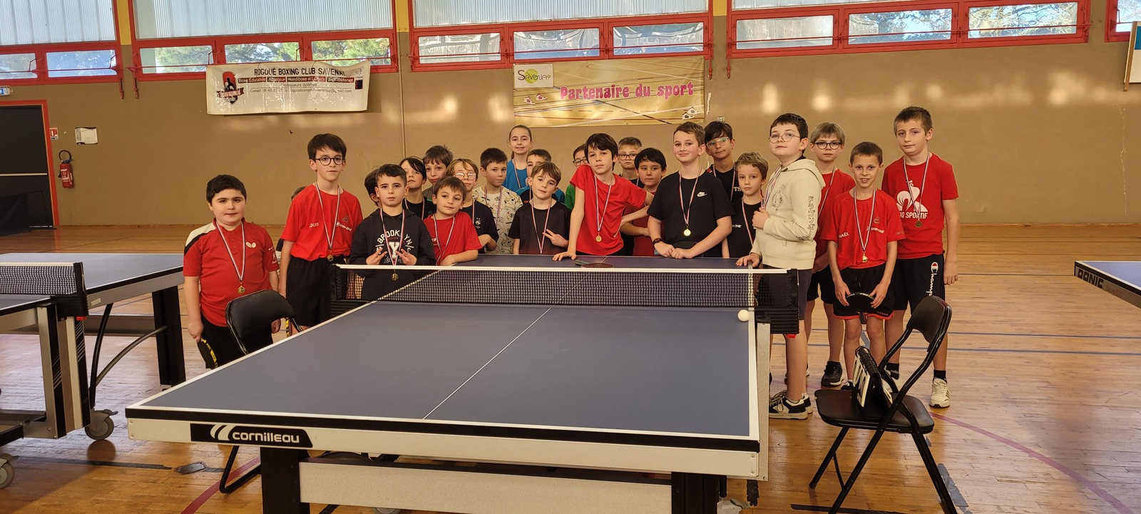 De bons résultats pour nos mini pongistes avec 4e ex aequo Stacie, 10e ex aequo Baptiste, 13 ex aequo Tom et Gabriel, 16e ex aequo Enzo et Soïg, 23e ex aequo Clotaire.